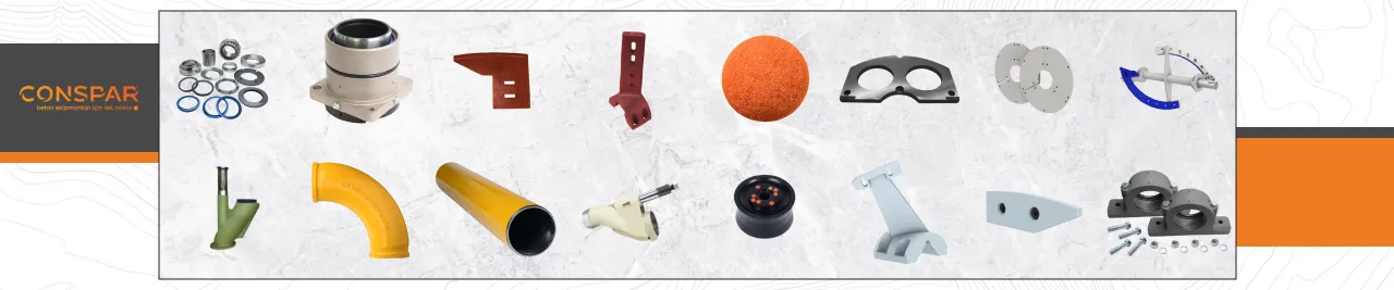 Conspar offers a vast selection of spare parts for concrete pump machines, including Pumping Cylinders, Concrete Pump Delivery Pipes, Spectacle Wear Plates, Delivery Elbows, Concrete Hoses, concrete pumping hose, pumping cylinders, delivery pipes, concrete pipeline, remote controls, and delivery pistons. Our parts are compatible with leading brands like Schwing Concrete Pumps, Putzmiester Concrete Pumps, Zoomlion Concrete Pumps, CIFA Concrete Pumps, and Sermac Concrete Pumps, ensuring you access the needed parts.